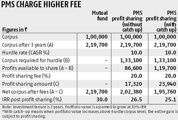 PMS Charge Higher fees vs Mutual Funds: So one can invest in a focussed equity fund as a 5th SIP option after one has already bought 4 funds in his kitty. Though it is generally not recommended because the scheme is skewed towards a very small set of stocks. As the size of the fund increases with time, then it becomes difficult for a fund manager to beat the benchmarks with very few sets of stocks. However, the focussed funds can be a good substitute for PMS. As PMS are complicated products with higher fund management fees. They also charge profit sharing when they cross a minimum threshold returns called as the hurdle rate. Hence, the IRR generated by the equity PMS can beat the IRR generated by the Focussed fund.