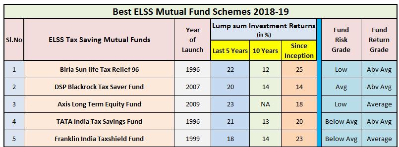 8. Equity Linked Savings Scheme -: The ELSS schemes is a tax saving product and is an equity mutual fund too. However, this has a three-year lock-in period. Any investments made in ELSS attract exemption under section 80 C of income tax act. Any investments can be redeemed after 3 years only. The tax saving should be your peripheral objective and not the core objective. The ELSS Funds offer better post-tax returns than traditional tax saving products. This is a top-notch tax saving instrument in comparison to other traditional products and esp ULIPS. The below chart shows the top 5 mutual fund ELSS schemes in 2018-19.